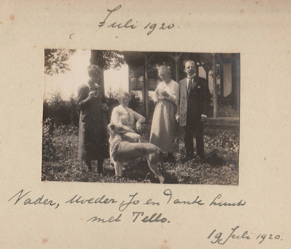 Van links naar rechs: Lucies nichtje Josine vDvI, Lucies schoonzuster en goede vriendin Jacoba vDvI - Rambonnet, Lucie zelf en geheel rechts Lucies broer Willem Edmond vDvI.